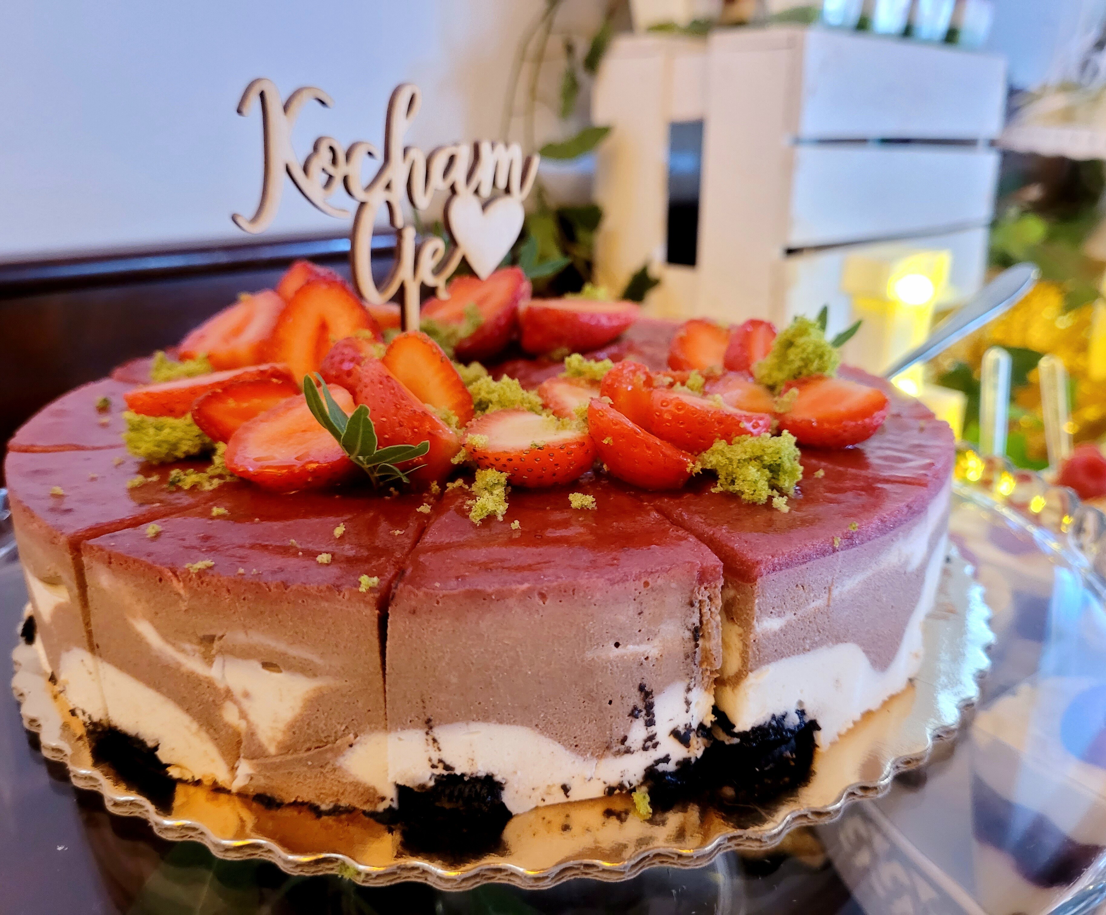 Pistacjowy z truskawkami