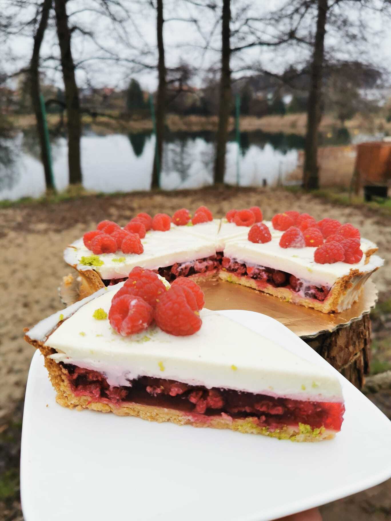 TARTA Z MALINAMI I BIAŁĄ CZEKOLADĄ - 200ZŁ